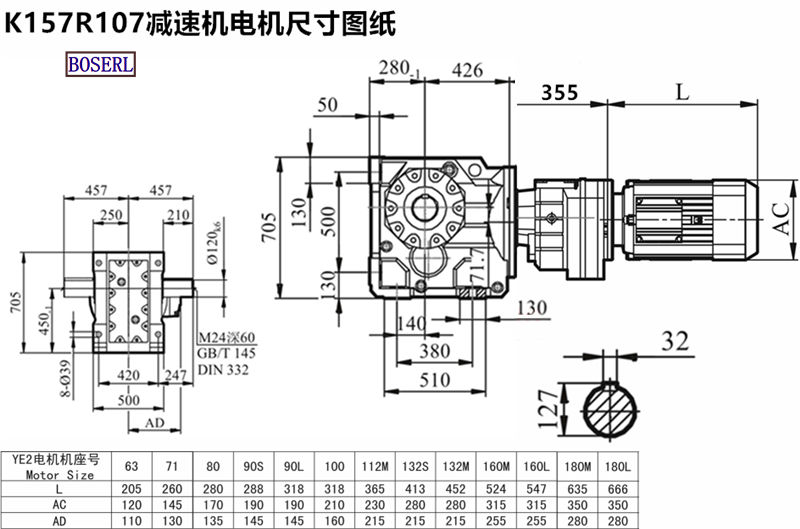 K158R108DR200M4_K158R108DM180M4_K158R108DRN200M4_K158R108DVE180M4減速機電機型號大全