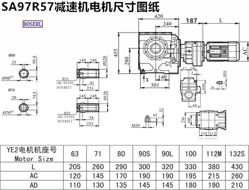 SA98R58DRN90M4_SA98R58DM80M4_SA98R58DVE100M4_SA98R58DR112M4減速機電機型號大全